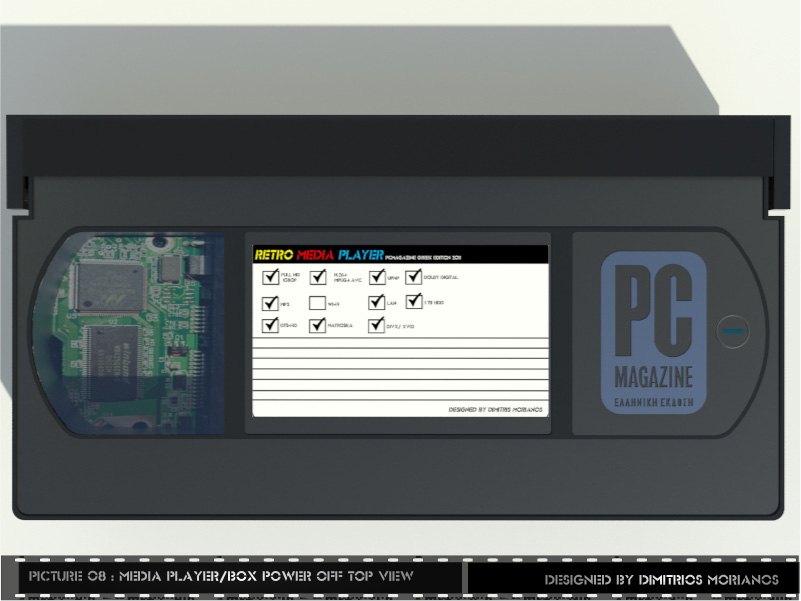 Media player/ media box είναι συσκευές που υπάρχουν στην αγορά και τις συνδέει κάποιος με την οθόνη του, δίνοντάς του τη δυνατότητα αναπαραγωγής Μultimedia. Το προϊόν αυτό το σχεδίασα προς τιμήν του PC Magazine καθώς είμαι τακτικός αναγνώστης του.